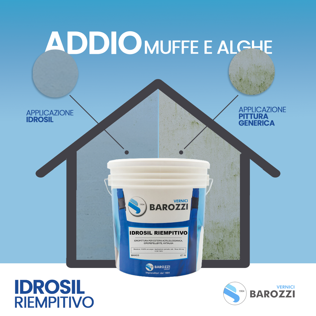 Sai che le facciate esposte a Nord sono più soggette alla formazione di alghe, muffe e muschi? Idrosil garantisce eccellenti prestazioni di idrorepellenza in situazioni difficili.